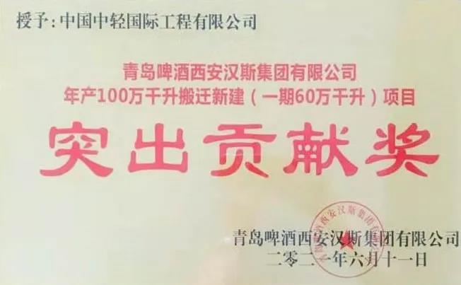 在隆重的出酒儀式上,中輕國際被授予“突出貢獻(xiàn)獎(jiǎng)”的稱號(hào),中輕國際為青島啤酒的標(biāo)桿工廠—西安公司提供了優(yōu)質(zhì)的服務(wù),貢獻(xiàn)出了設(shè)計(jì)工作者的力量。