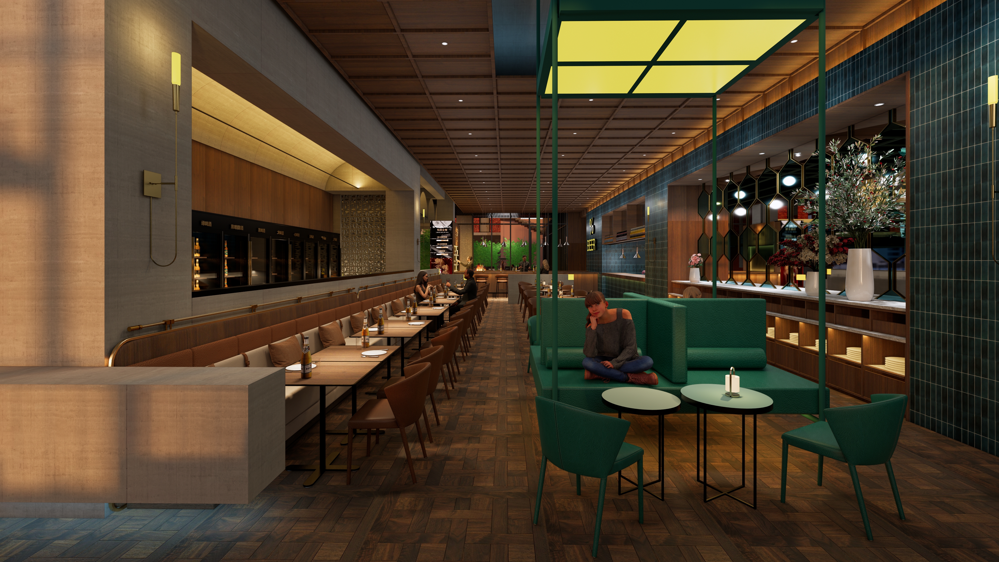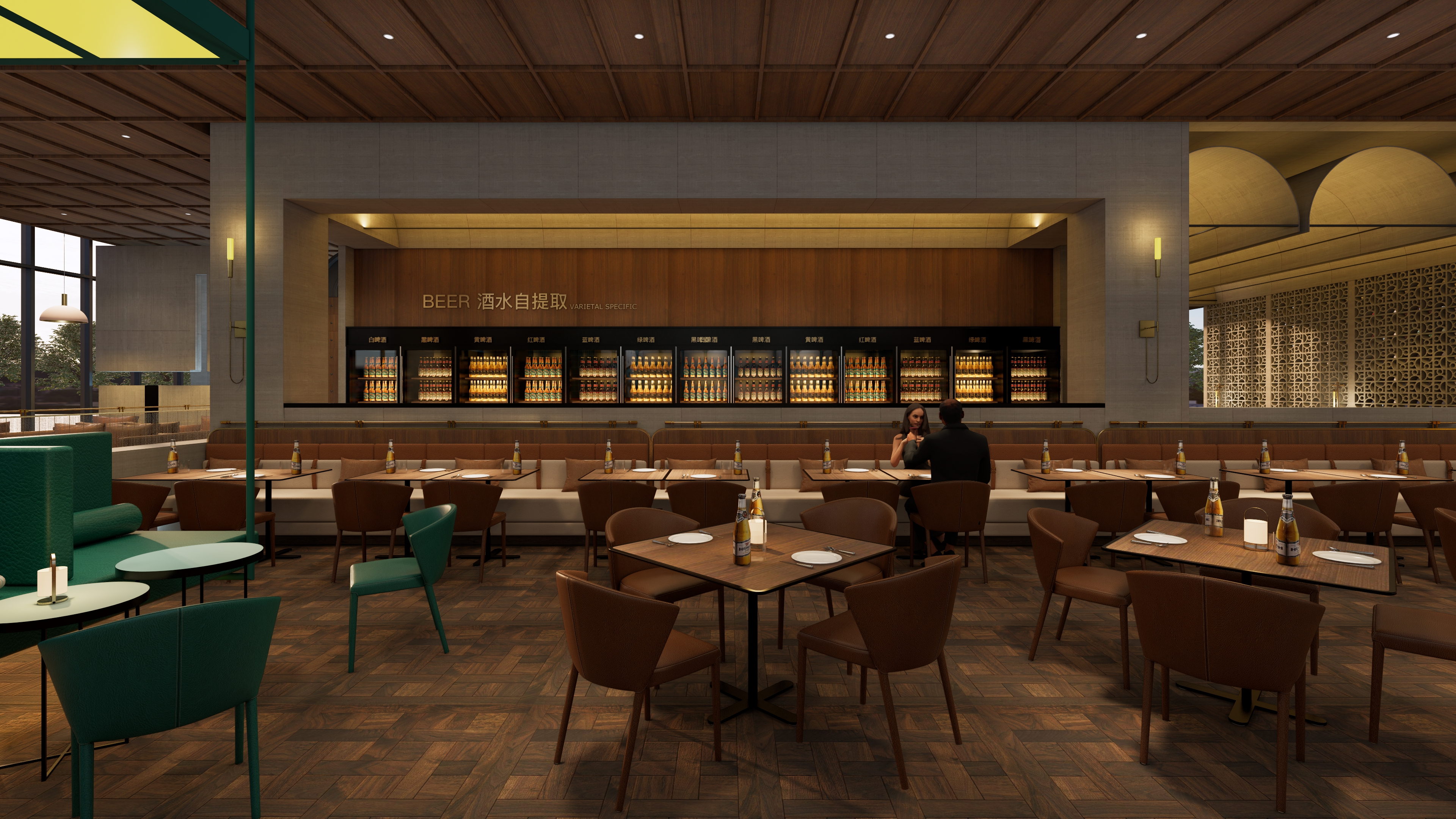 項(xiàng)目整體裝修風(fēng)格為明亮寬敞的現(xiàn)代輕奢輕工業(yè)風(fēng),餐廳內(nèi)配有自助酒水區(qū),顧客可自選酒類,且還有單獨(dú)的精釀啤酒吧臺(tái),在整體氛圍上,場地空間開闊,白天和晚上配合背景音樂及燈光效果,滿足不同時(shí)間段人群需求,延長營業(yè)時(shí)間,更有“引流”的屬性。