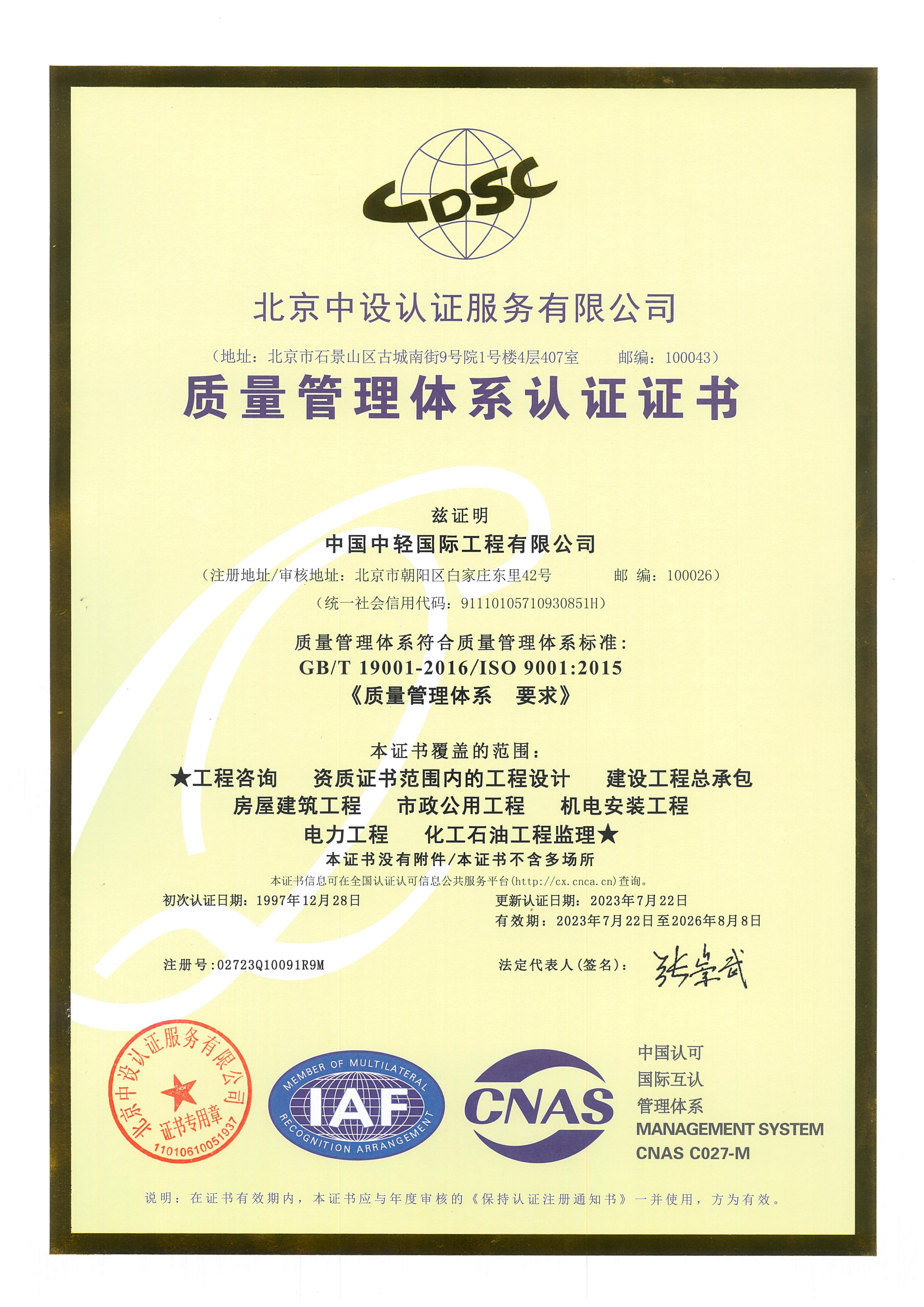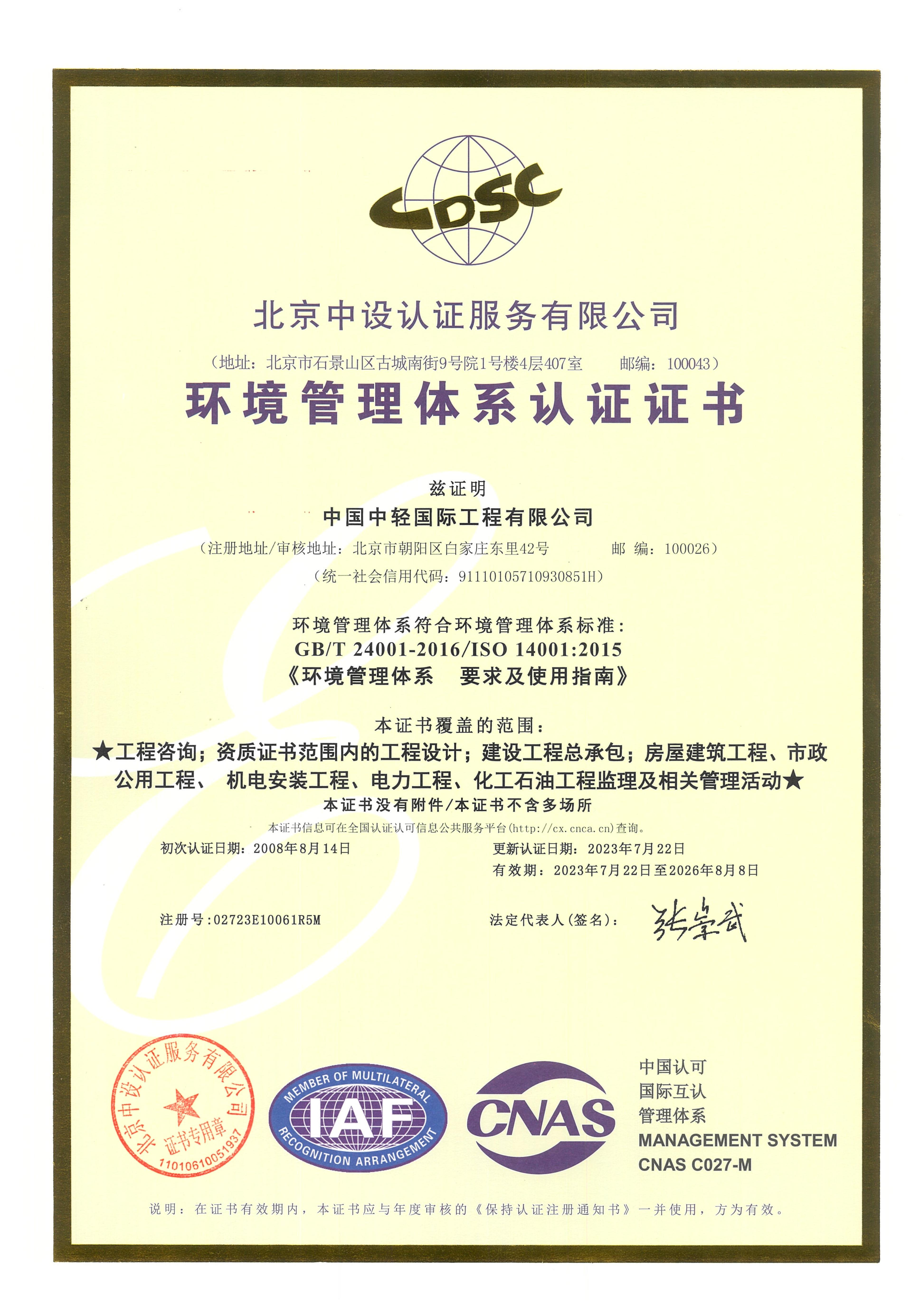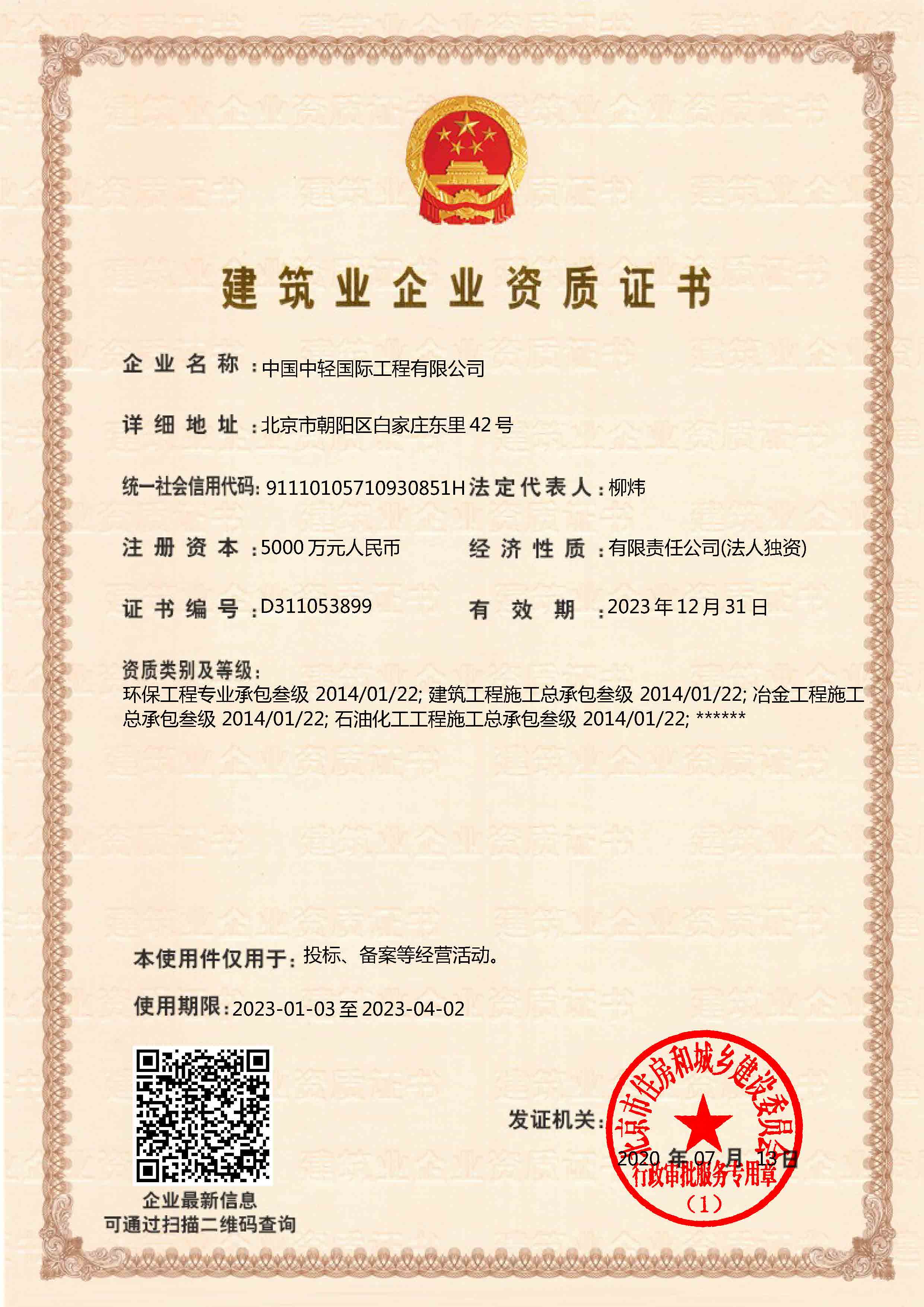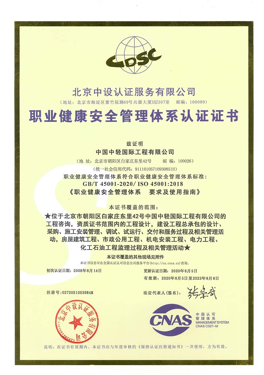CLIEC is a large engineering company mainly engaged in consulting, design, supervision, project management, and engineering general contracting, with import and export enterprise qualification certificates; A-level design qualifications for the entire textile industry, chemical, petrochemical, and pharmaceutical industry (chemical engineering), municipal industry (drainage engineering, environmental sanitation engineering), agricultural and forestry industry (forest chemical engineering), construction industry (construction engineering), and environmental engineering special projects (water pollution prevention and control engineering, air pollution prevention and control engineering); B-level design qualifications in urban and rural planning, commercial and food industries, chemical, petrochemical and pharmaceutical industries (biochemistry, biopharmaceuticals, chemical raw materials), electric power industry (thermal power generation), construction materials industry (new construction materials engineering), municipal industry (water supply engineering, town gas engineering, thermal engineering) and environmental engineering special projects (solid waste treatment and disposal engineering); 2nd-level qualifications for professional contracting of architectural decoration and renovation engineering, general contracting of construction engineering, general contracting of petrochemical engineering construction, and professional contracting of environmental protection engineering; A-level qualification for engineering consulting credit; A-level qualification for engineering supervision; AAA credit evaluation of engineering cost; the design license of pressure vessels and pressure pipelines. Since 2009, CLIEC has been continuously recognized as a national high-tech enterprise.