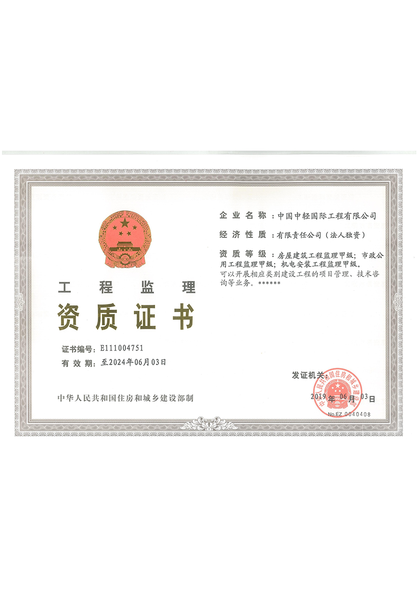 • 工程監(jiān)理乙級資質(zhì)證書