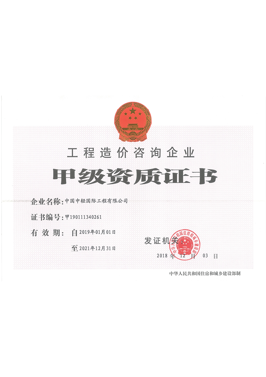 • Qualification Certificate of Engineering Cost Consultation Enterprise(Grade A)