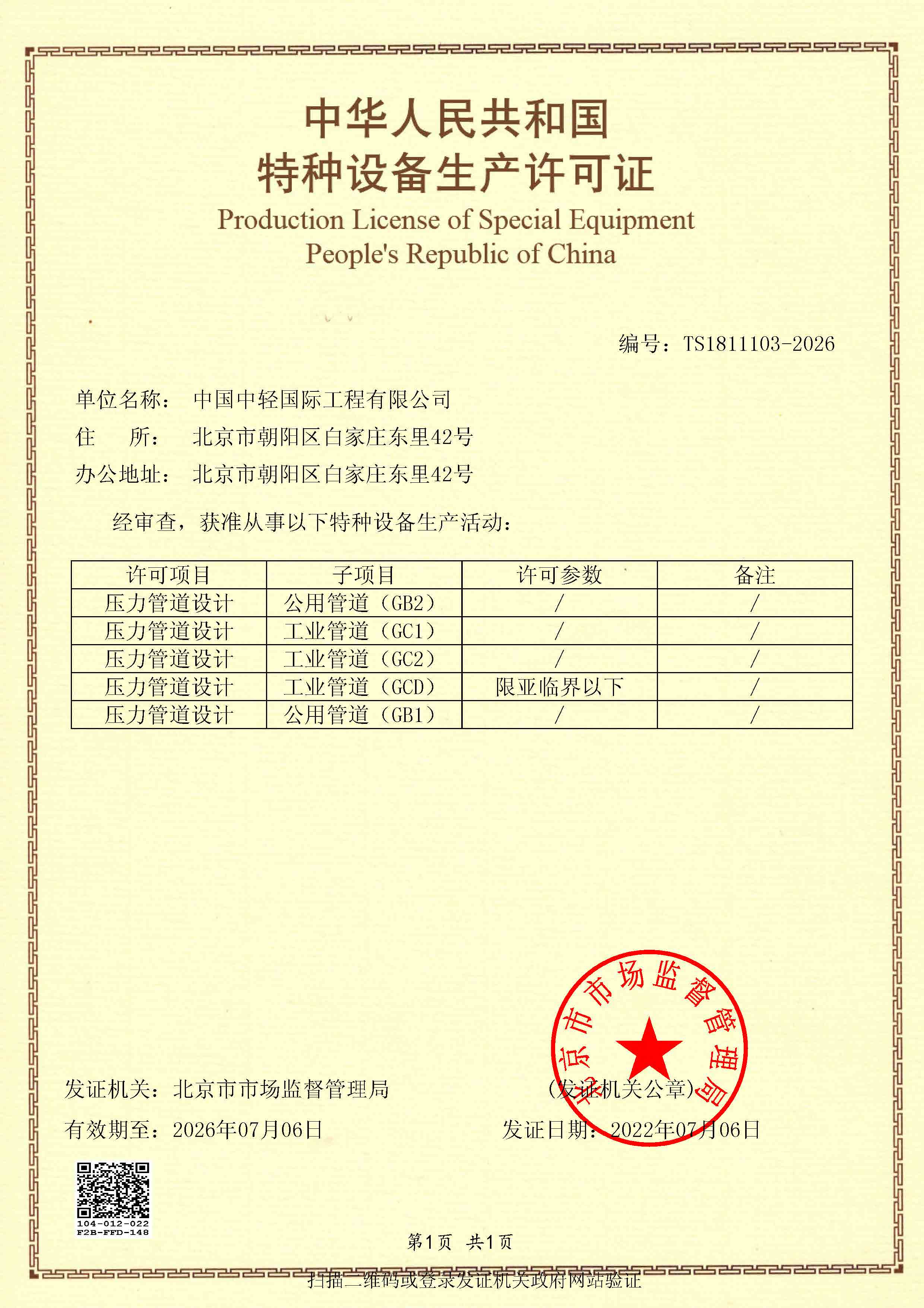 • Design License of Special Equipment (Pressure Pipeline)