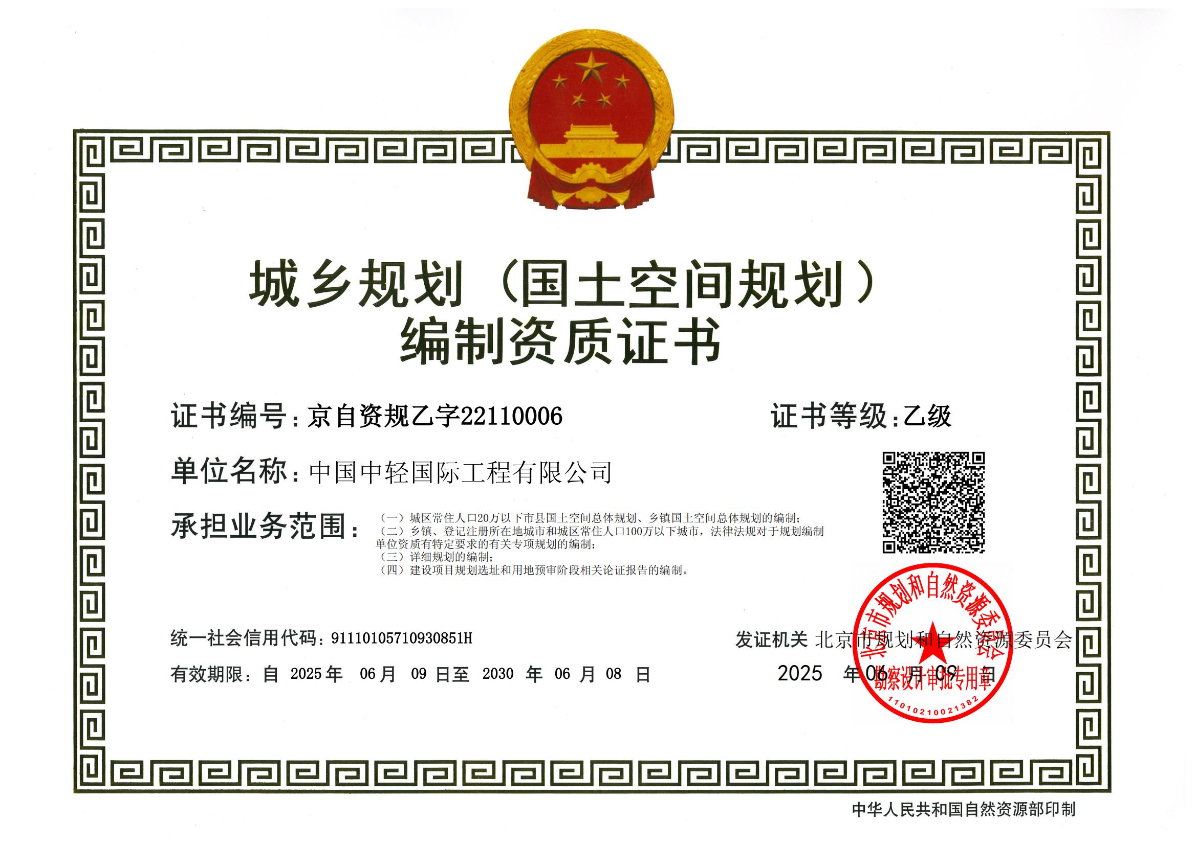 • Qualification Certificate of Urban and Rural Planning (Grade B)
