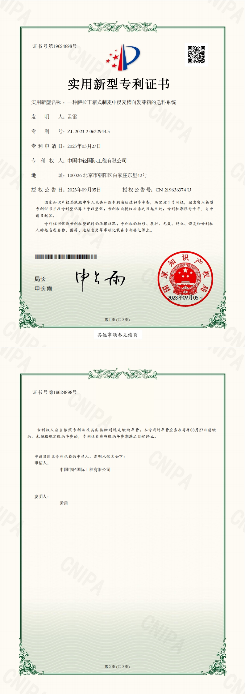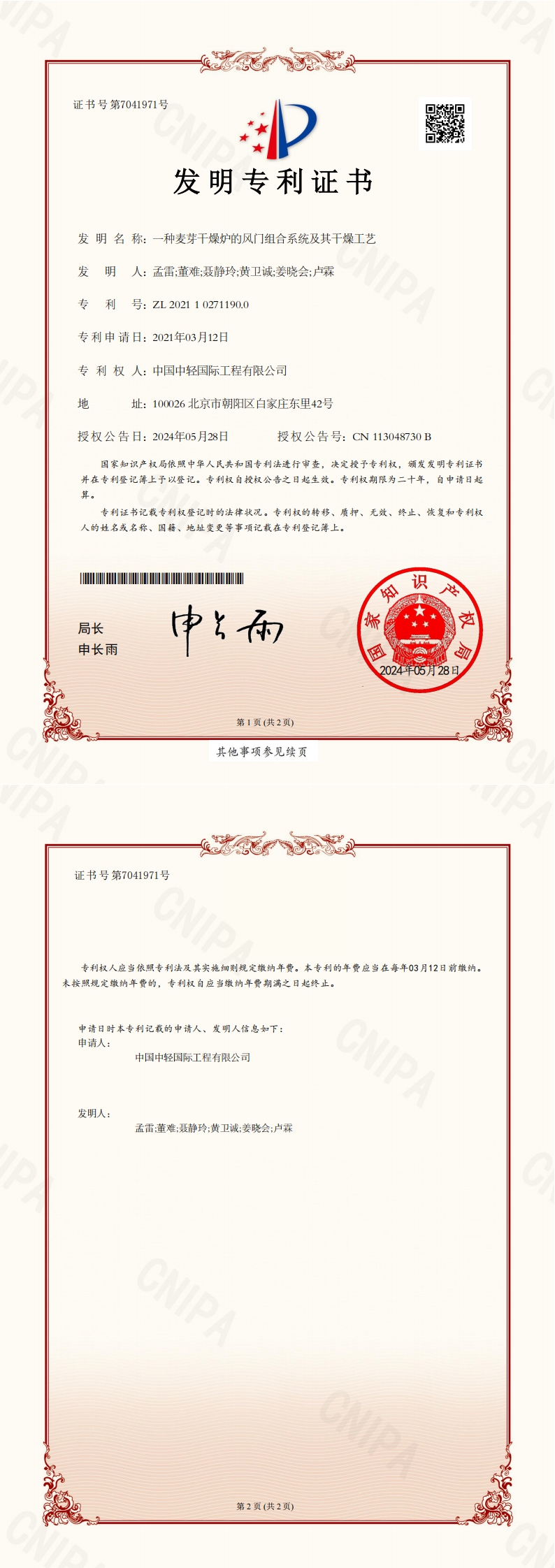 • Invention Patent Certificate